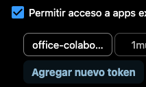 Habilitar la casilla "Permitir acceso a apps externas", y crear un token (NC lo guardará para interactuar con el CODE)